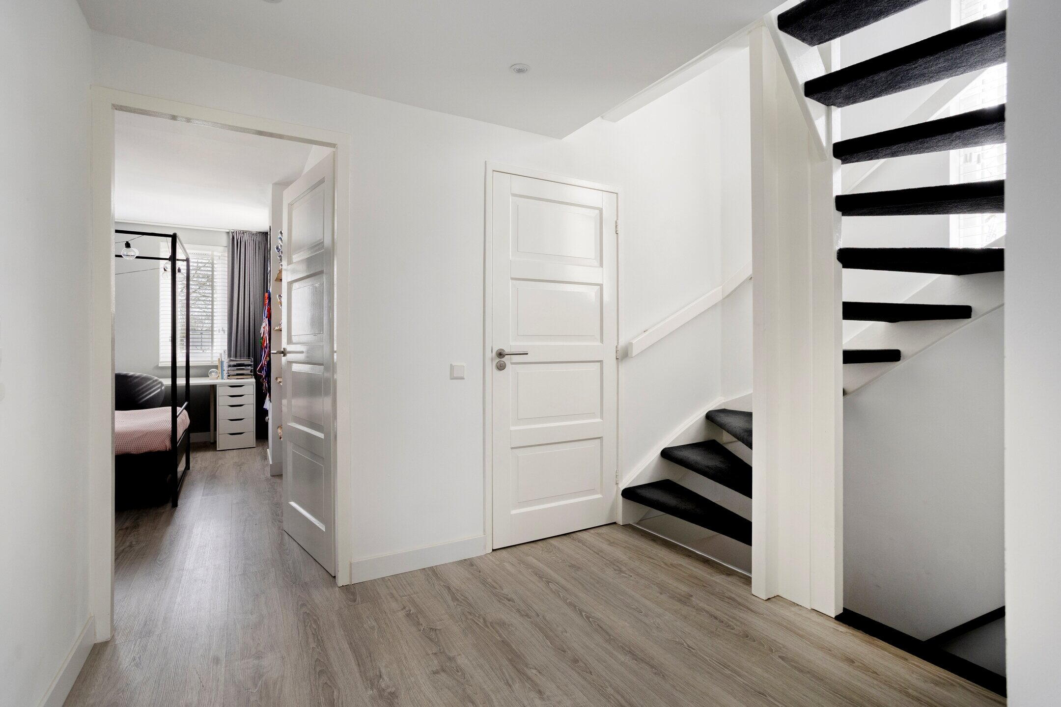 Entree, hal, toilet toegang tot woonkamer, ruime lichte woonkamer met een open keuken in L vorm voorzien van; Koel/vries, inductiekookplaat, combi-oven en afzuigkap. Vanuit de woonkamer kunt u middels een vlizo trap de bergzolder bereiken. Naast de keuken zit de deur naar de ruime slaapkamer welke is voorzien van een inloopdouche en een wastafel meubel. Door het mooie hoge plafond voelt deze ruimte heerlijk aan, de kamer grenst aan de achtertuin dus u wordt heerlijk wakker met het gezang van de vogeltjes. In de gehele woning ligt een nette PVC vloer voorzien van vloerverwarming.