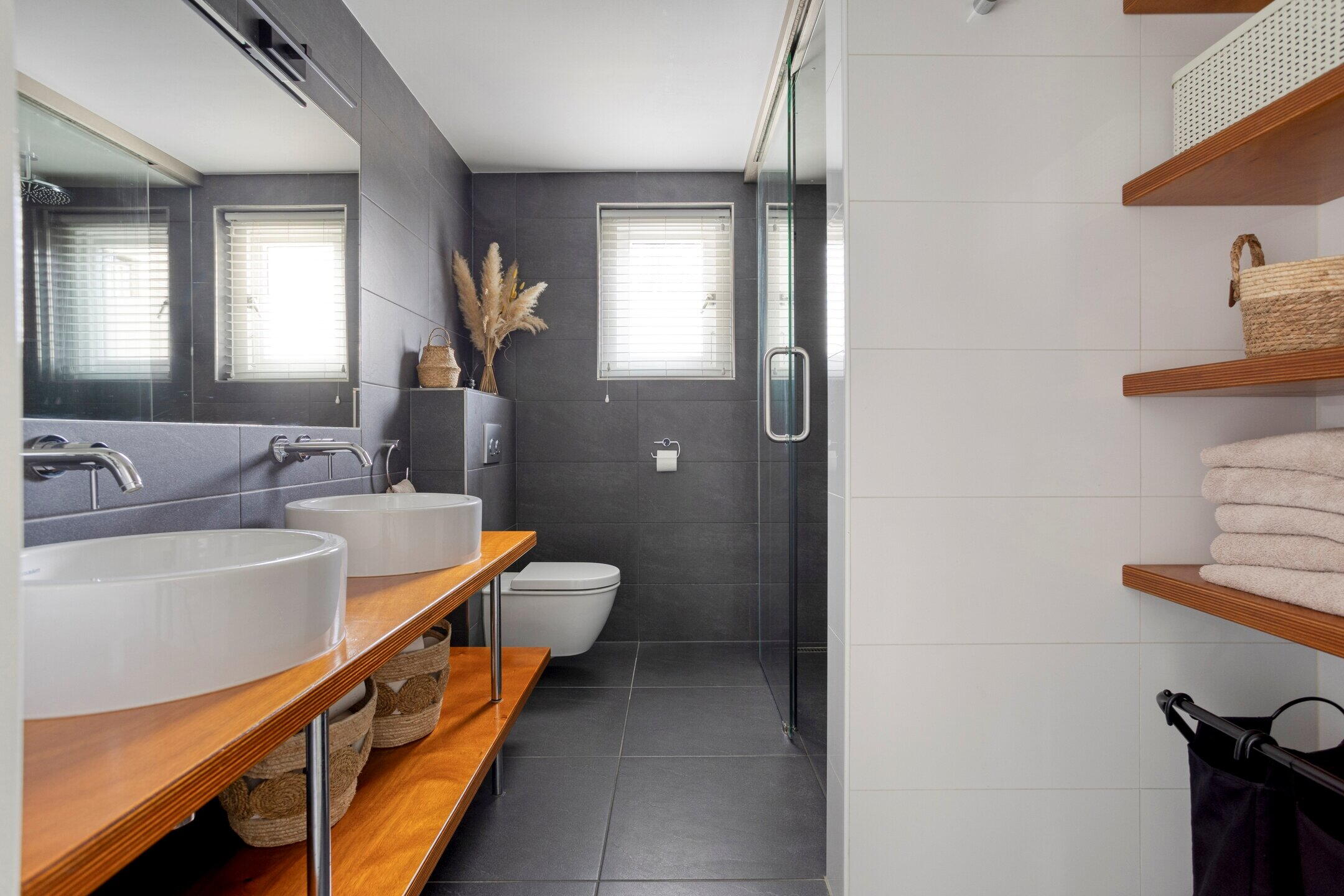 - Toilet, wastafelmeubel, walk in douche, vloerverwarming