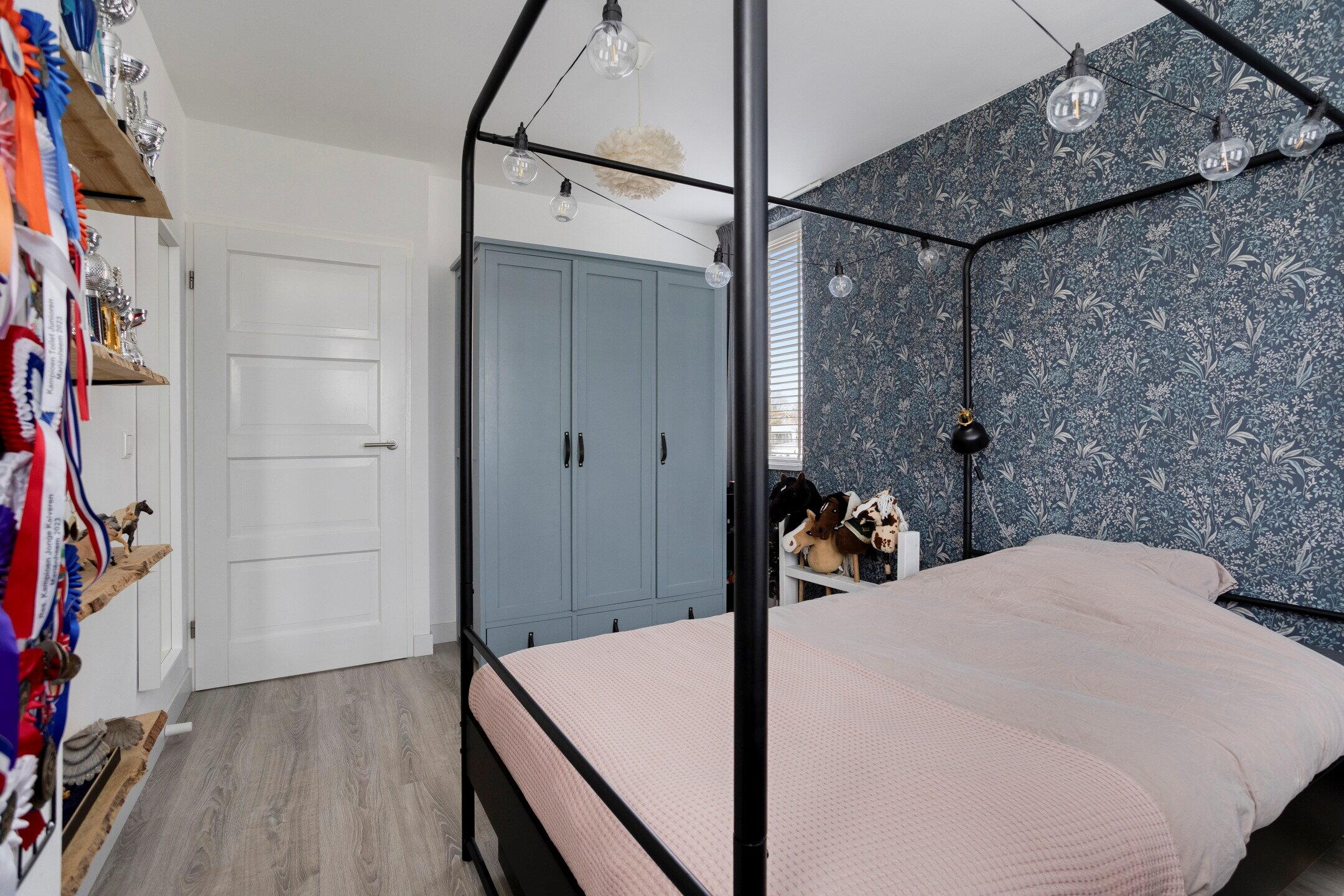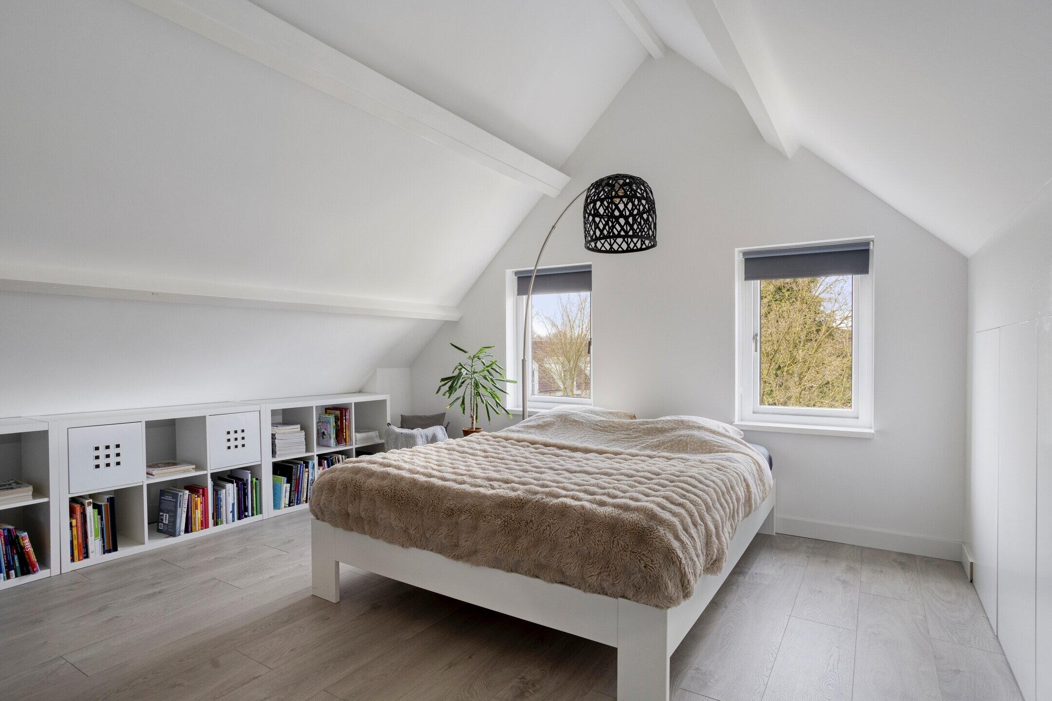Overloop, drie slaapkamers, 2 kamers voorzien van wandverwarming en 1 slaapkamer voorzien van ruime kledingkast. Ruime badkamer met grote inloopdouche met stort- en handdouche en schuifdeur, wandtoilet en wastafelmeubel met twee waskommen, extra legplanken en plafondverwarming.