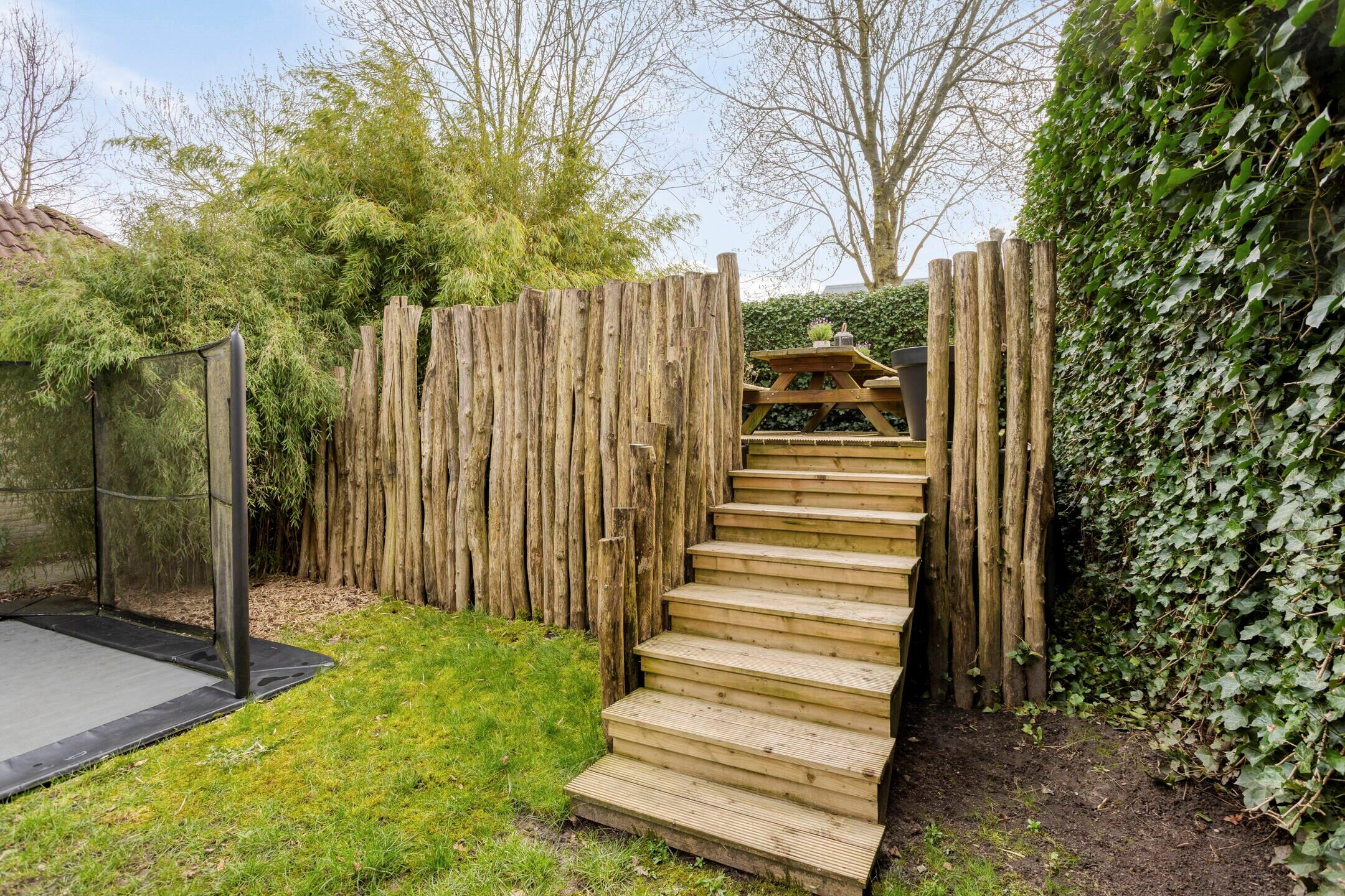 De achtertuin is goed gelegen op de zon (west) en is smaakvol en goed ingericht. Er zijn diverse terrassen gemaakt en achter de garage treft u nog een grote opslag voor het haardhout. Achter in de tuin is een half verzonken wellness gebouwd met op het dak een ruim terras met grote picknick tafel. De wellness is uitgevoerd met een ruime Finse sauna een XXL Jacuzzi en een douche.