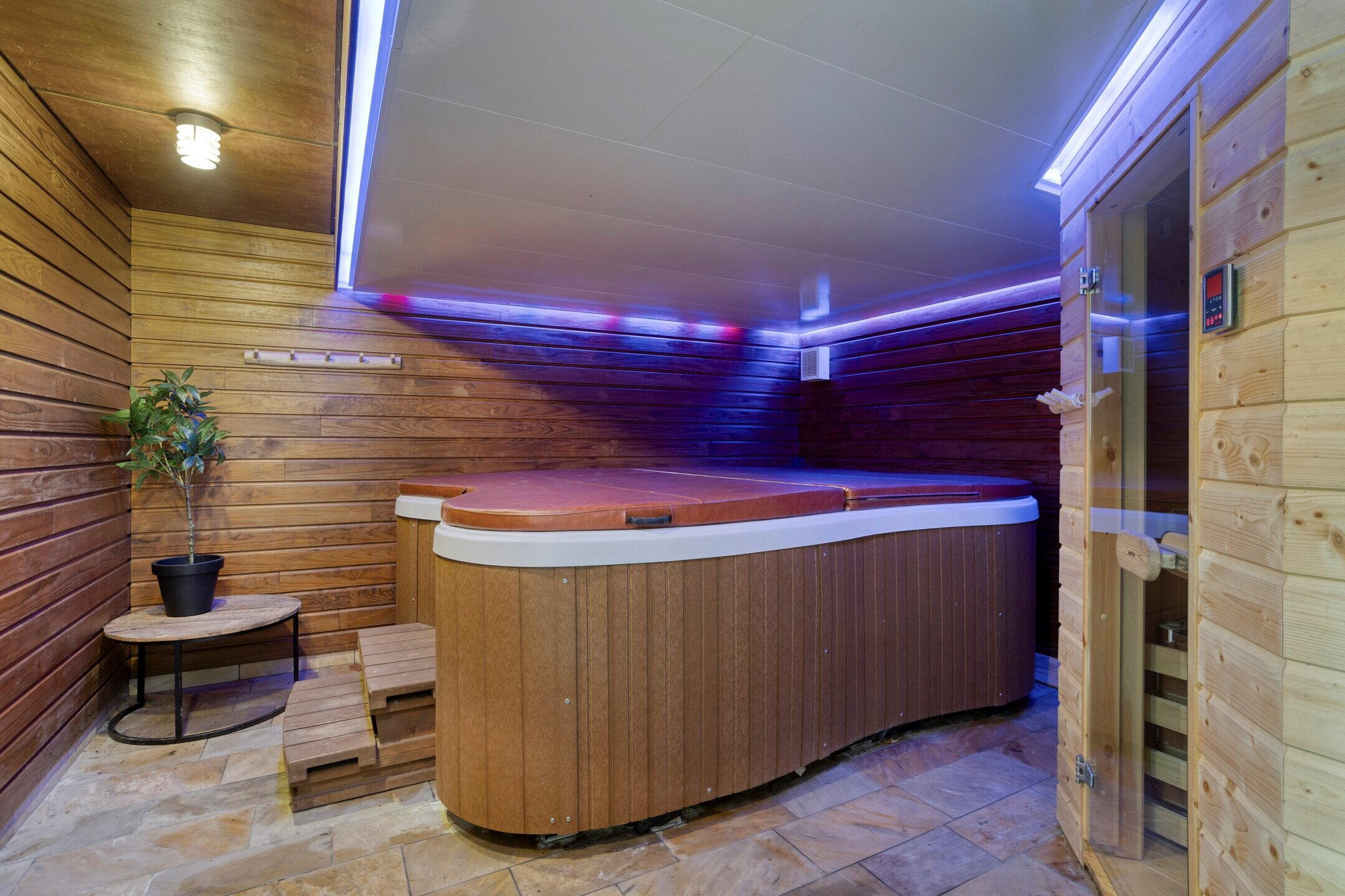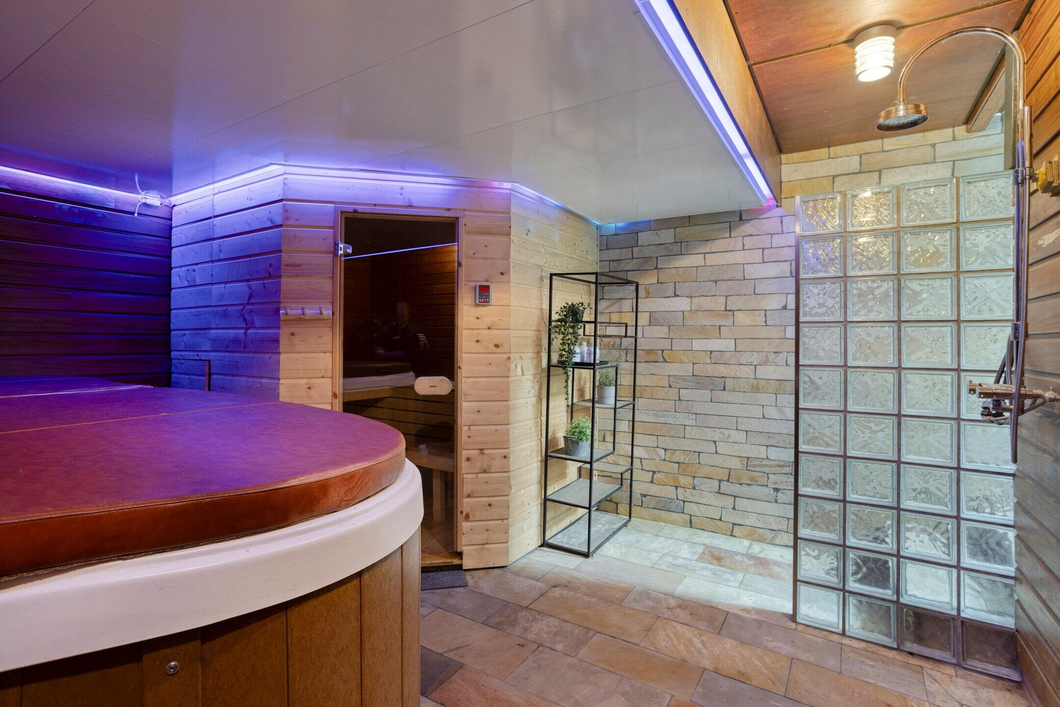 En als absolute kers op de taart: De vrij gelegen, luxe wellness ruimte in de tuin met sauna, jacuzzi en een douche. Hier ervaart u na een dag hard werken, het gevoel van ontspanning en comfort, gewoon in uw eigen huis.